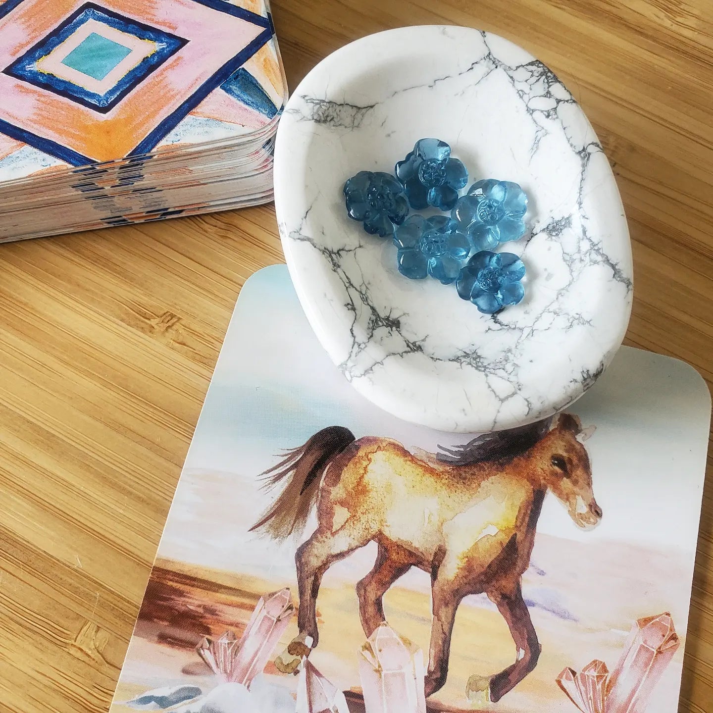 These gemmy aquamarine crystals have been hand carved into delicate cherry blossoms, measuring approximately 1 cm / 0.4 inches in size. Each is a beautiful saturated blue.