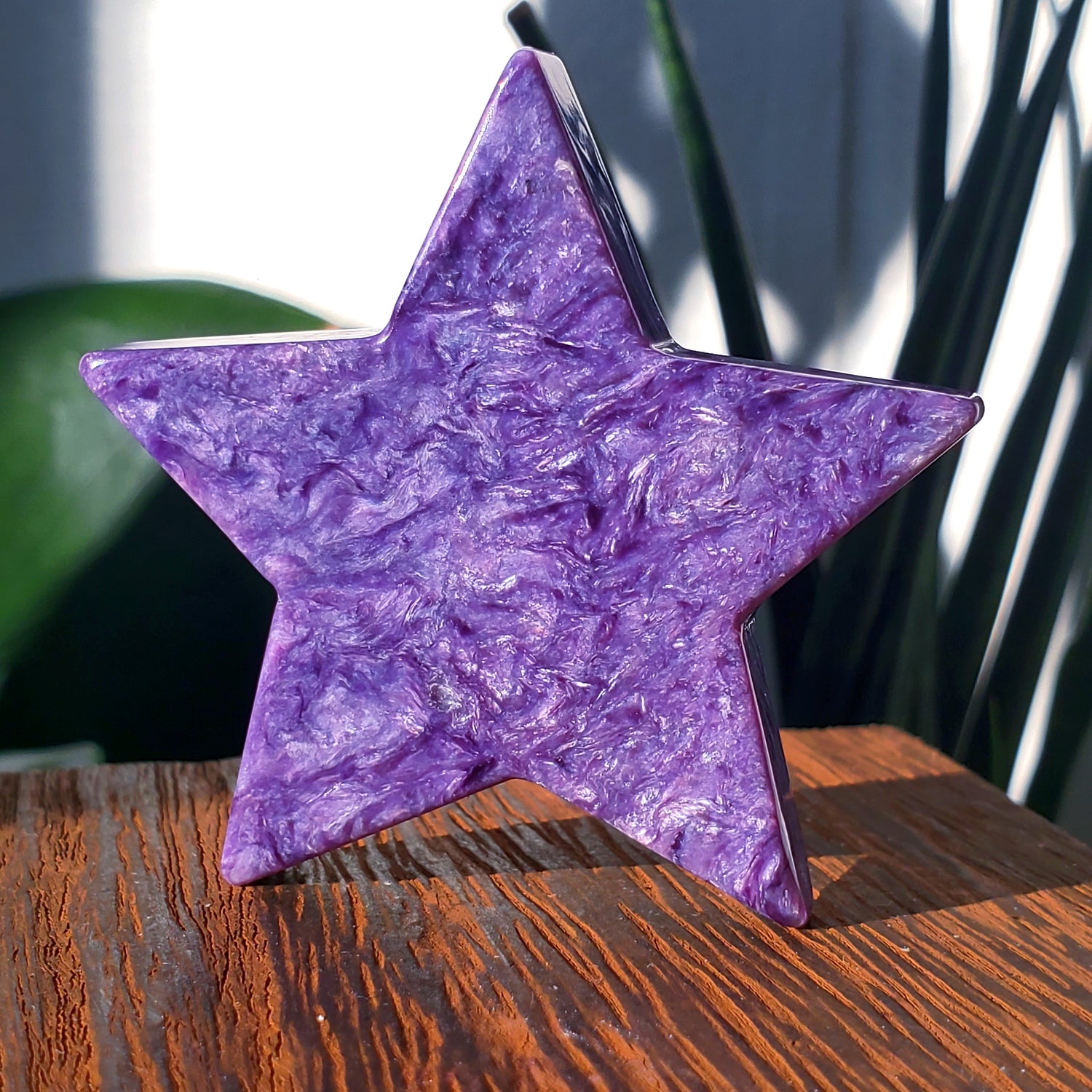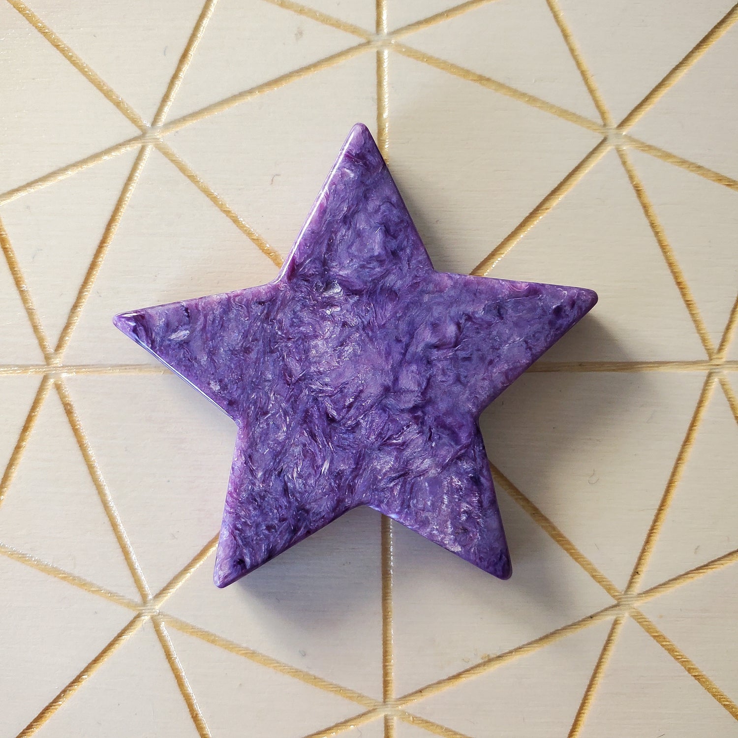 Charoite is a stone of transformation. It cleanses the aura and chakras by transmuting negative energy into healing. It opens our hearts and stimulates unconditional love. Re-energises, reducing stress and worry.