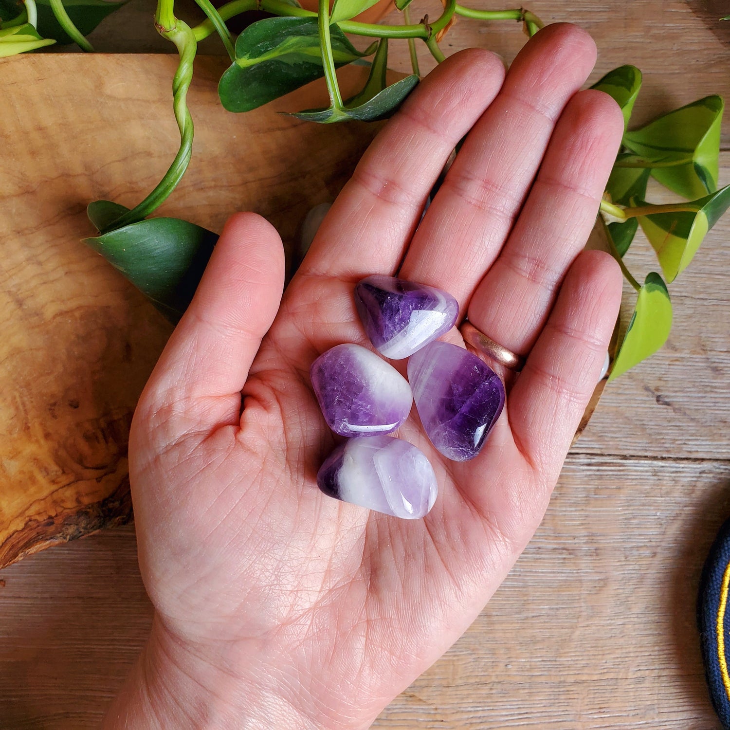 Chevron Amethyst combines the strengthening and enhancing qualities of Quartz with the stress relieving qualities of Amethyst.