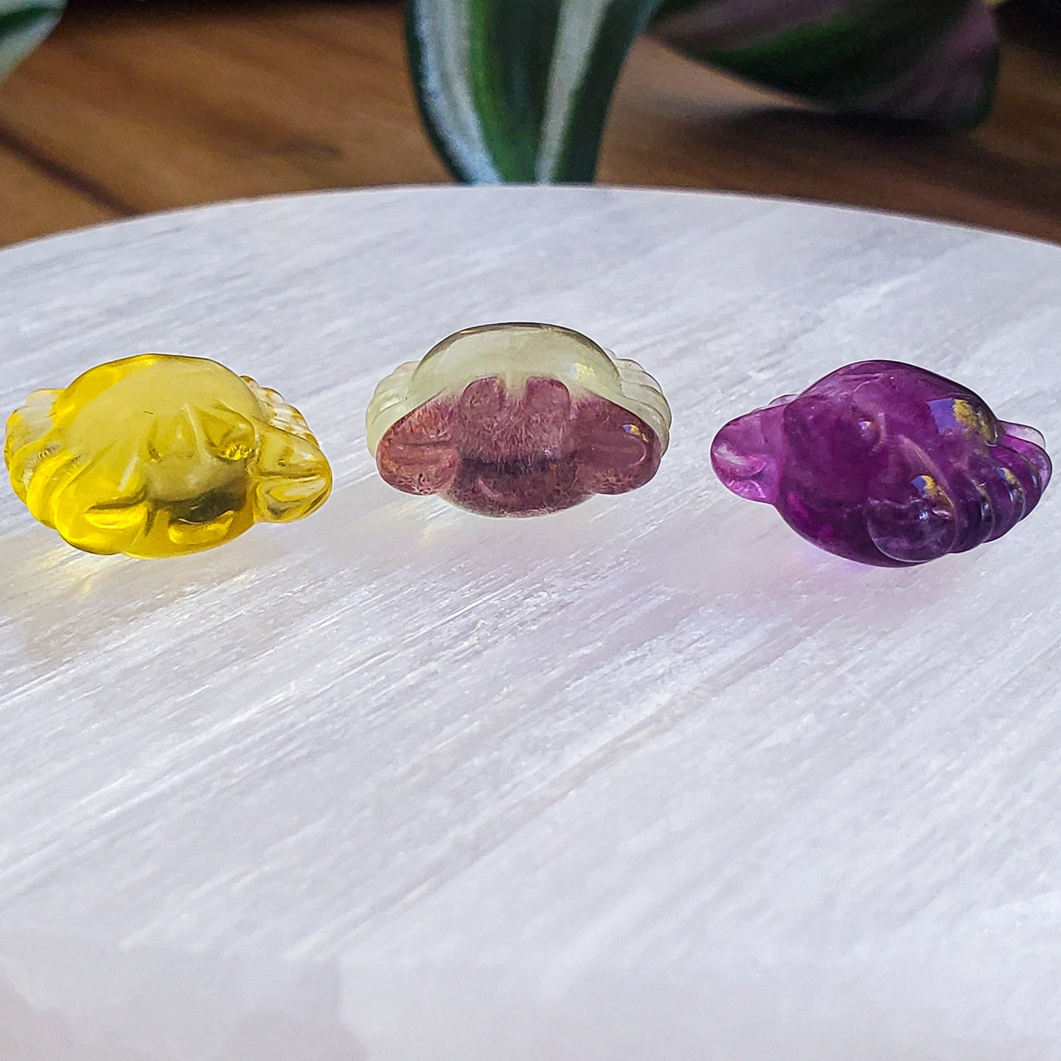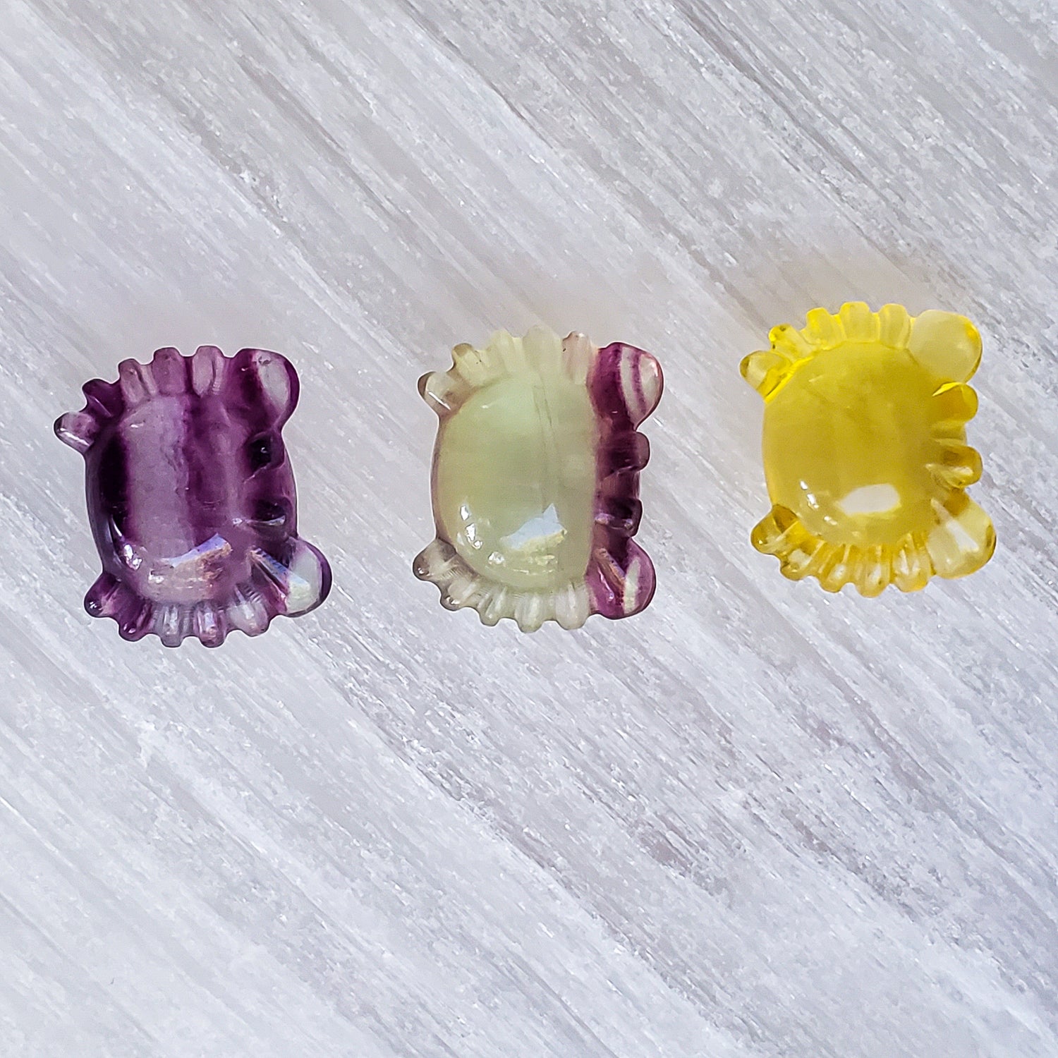 Adorable tiny 3 dimensional carved fluorite crab.