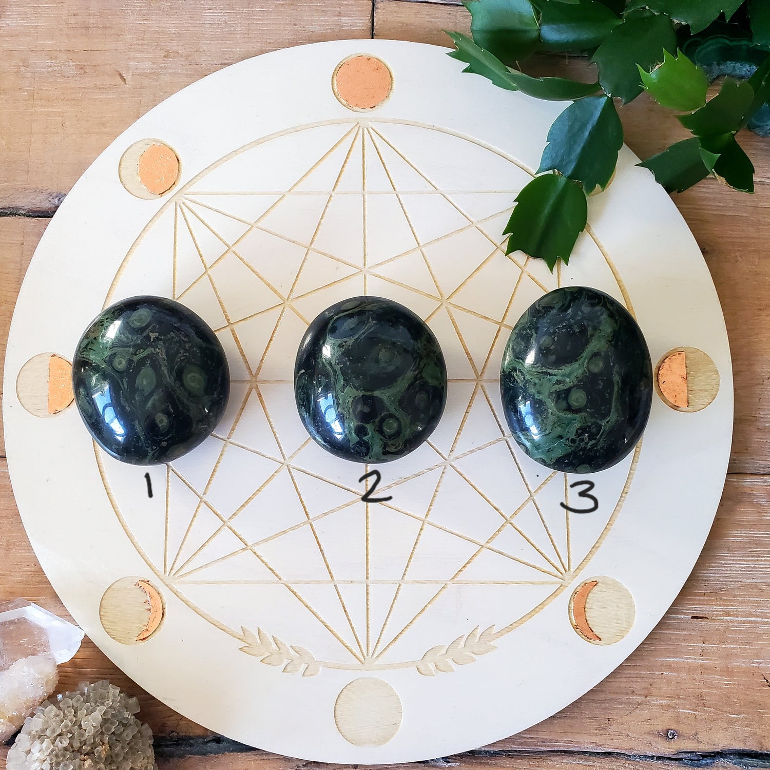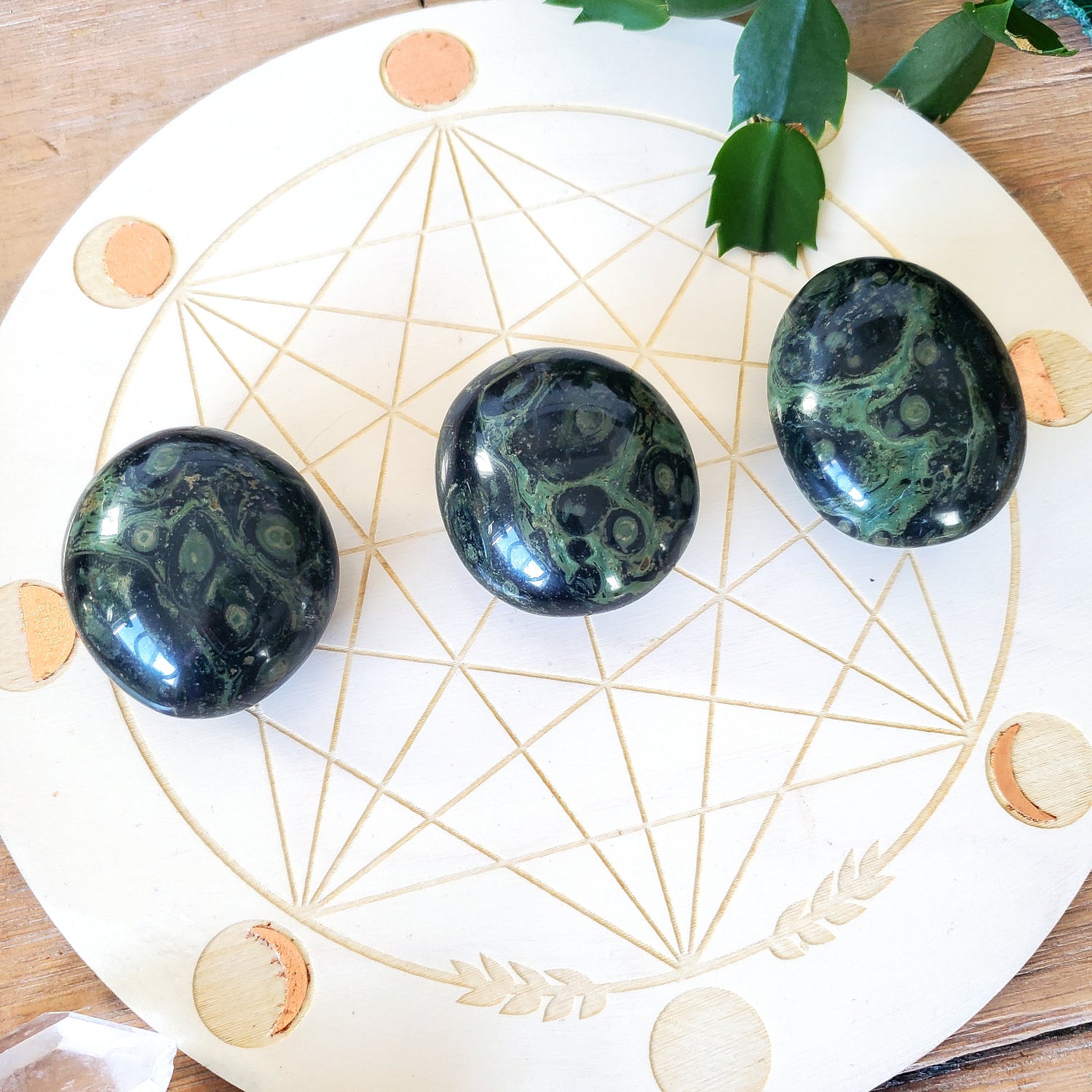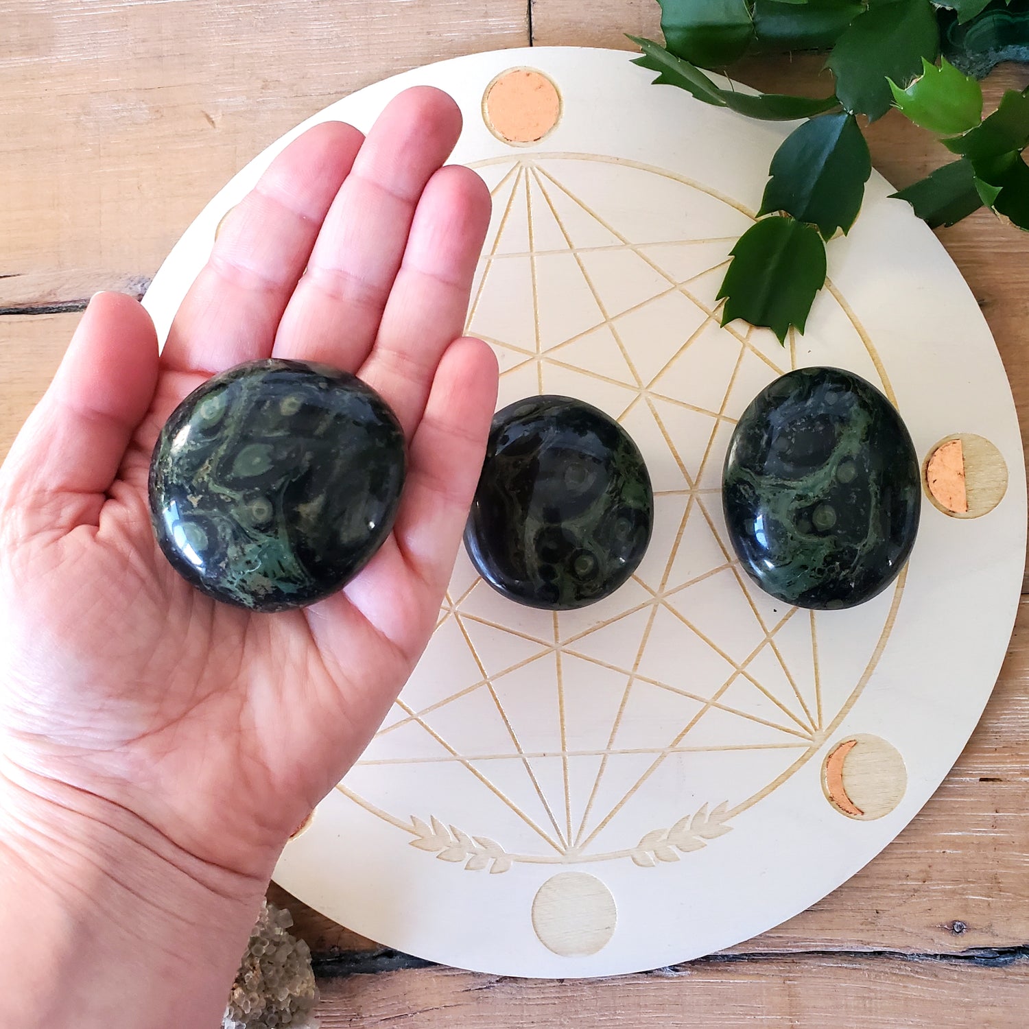Kambaba Jasper consists of fossilized stromatolite algae, making it a protective and peaceful stone imbued with natural, nourishing green energy.