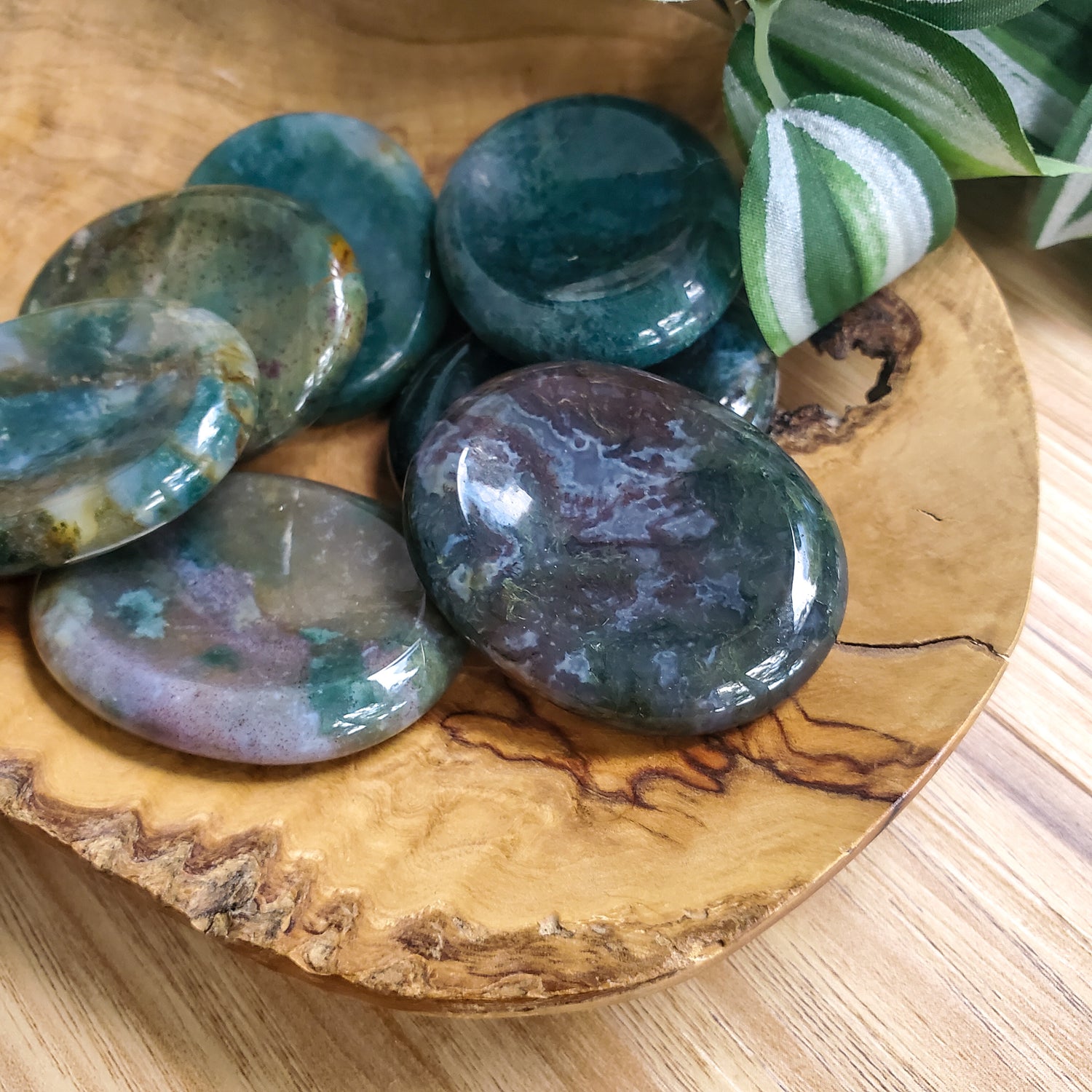 This stone has traditionally been used for bringing in abundance and connecting with the earth. Polished with divot for meditation.