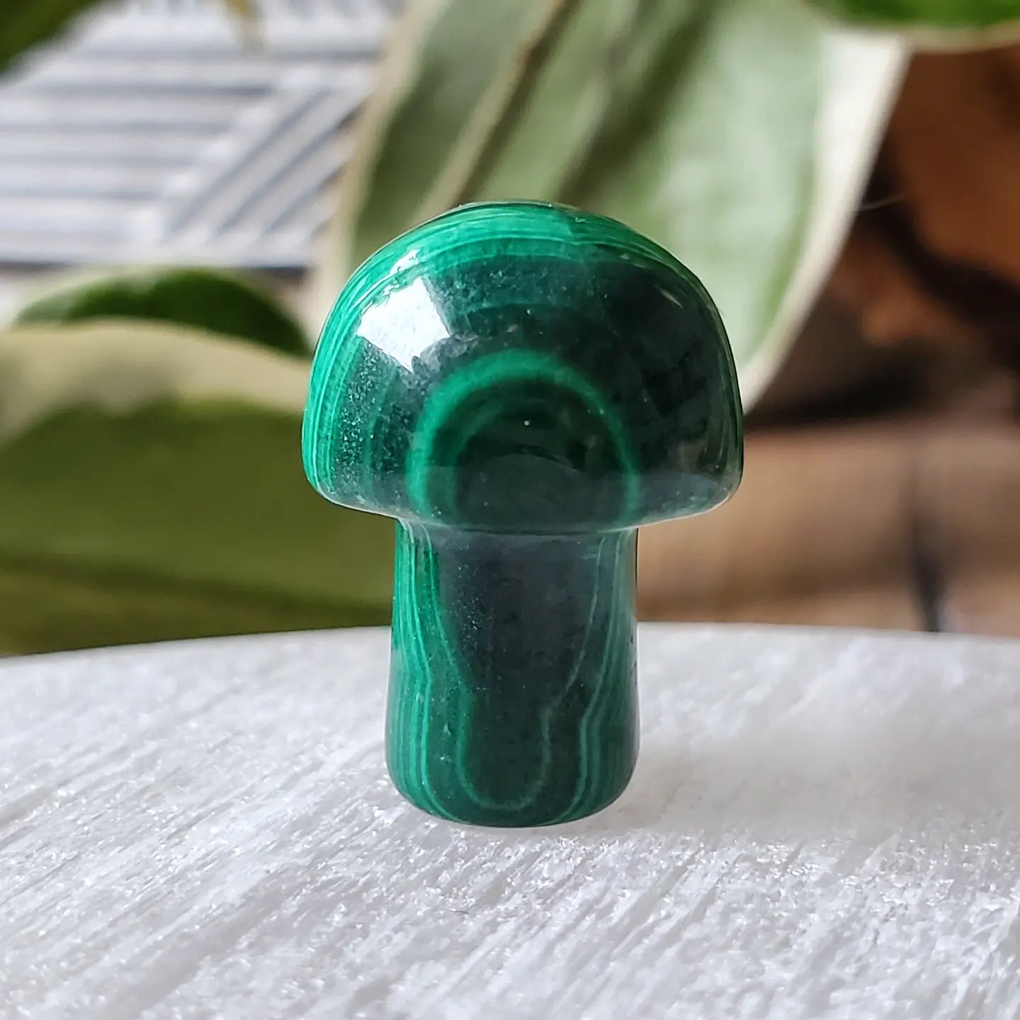 The newest mushroom in our collection was really hard to come by - malachite keeps increasing in value and isn't easy to find carved into smaller shapes.