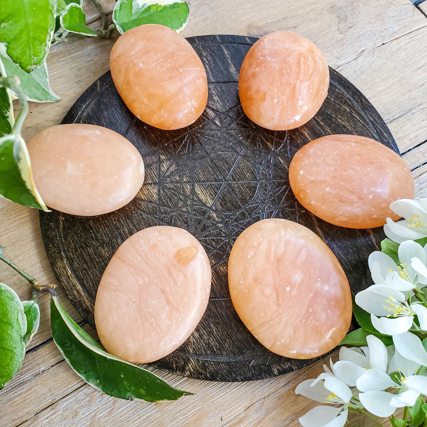 Peach Calcite Palmstones (Madagascar)