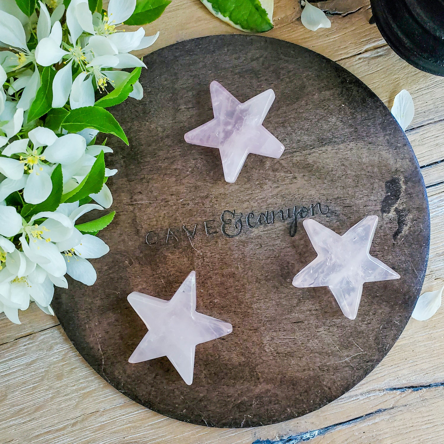 Crafted from delicate rose quartz and hand-polished into dazzling stars, our Rose Quartz Stars are not only a stunning addition to any sacred space, but also radiate the calming and healing energy associated with this beloved crystal. Let their ethereal beauty and positive vibrations enhance your spiritual practice.