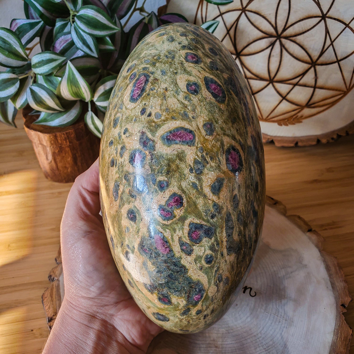 Ruby and Kyanite facilitate peaceful vibrations, allowing you to manifest your heart's desire. The Ruby aspect in Kyanite acts as a nurturer with healing and positive effects on the emotions. Fuchsite is your go-to stone for self-reliance, self-confidence, and balancing of body, mind, and spirit.
