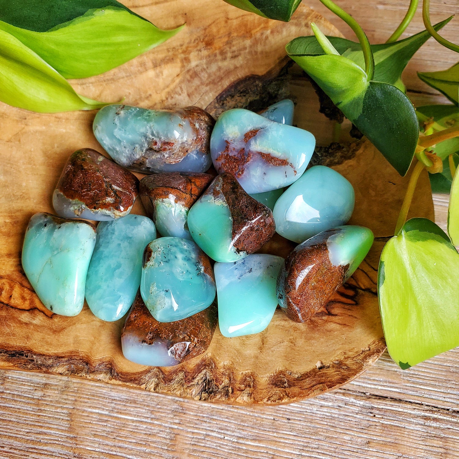 Green Chrysoprase is the gemmy, higher quality version of green chalcedony. It attracts abundance, and prosperity. The stone is also very soothing for matters of the heart, and helpful when dealing with grief, and heartache.