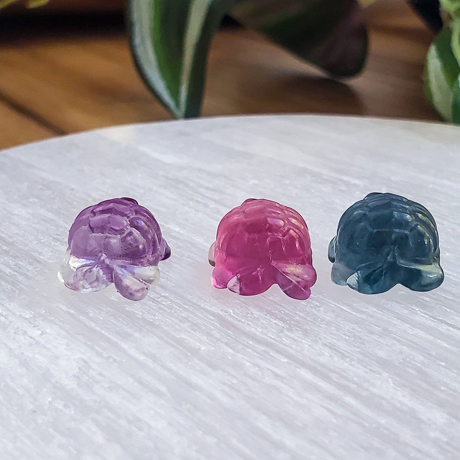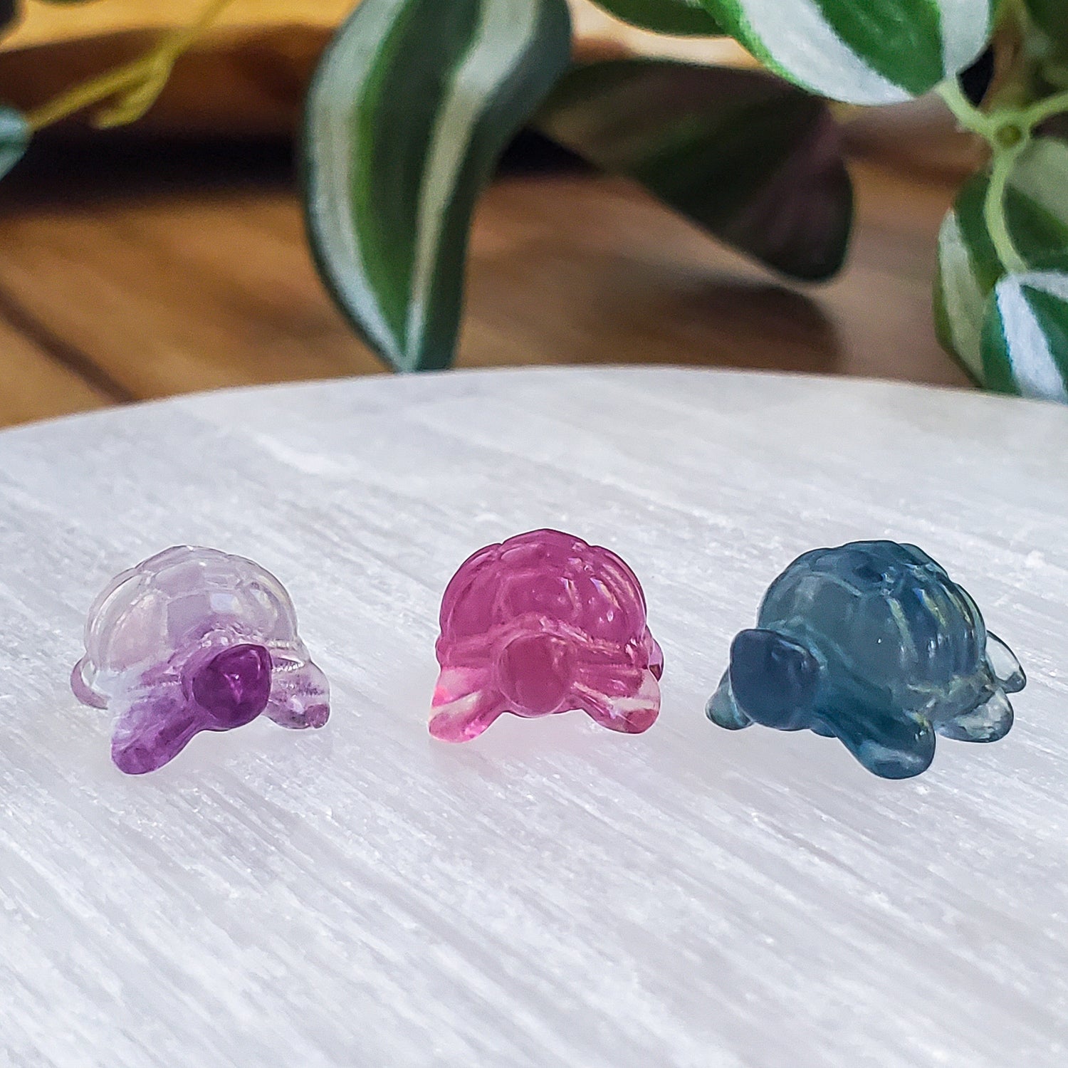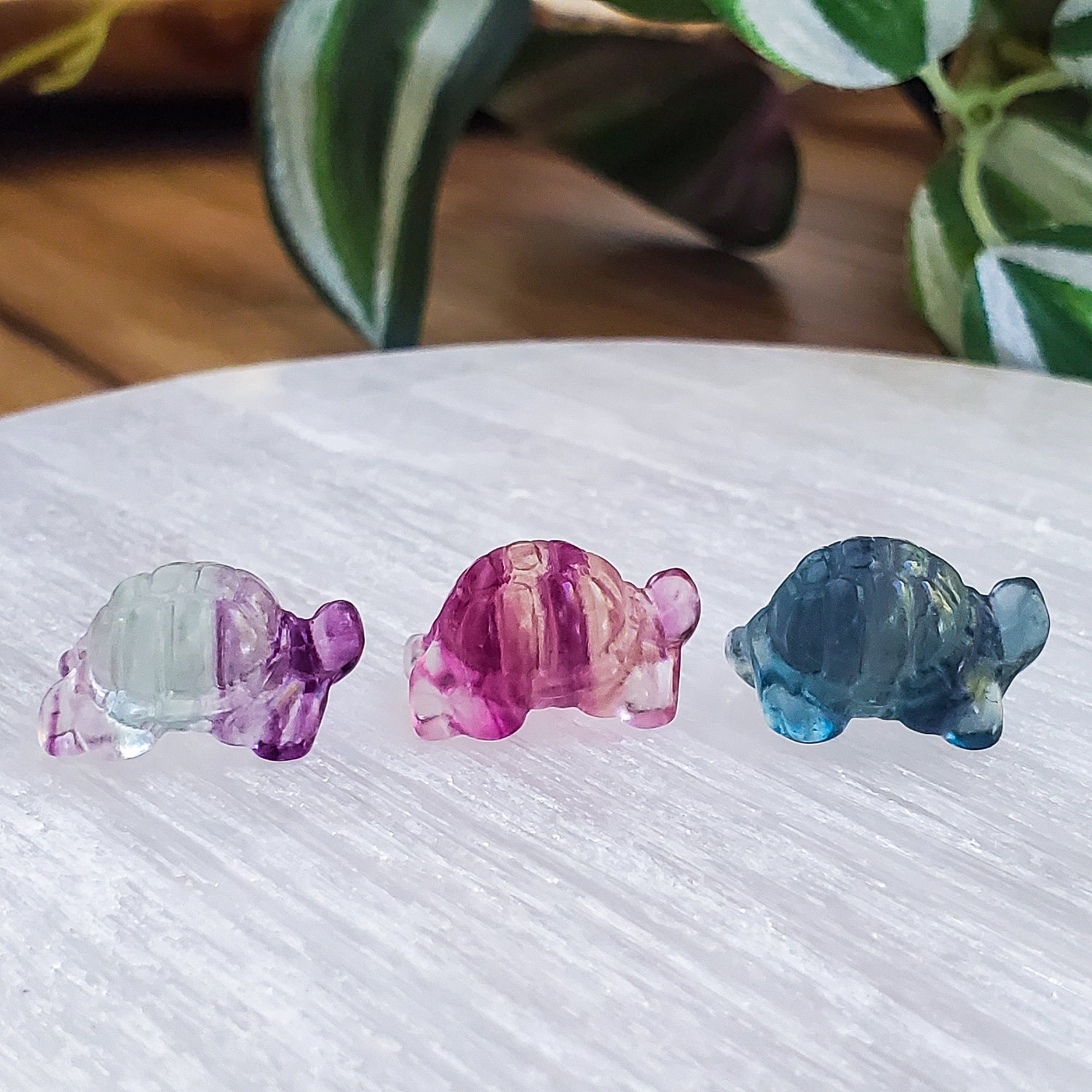 Adorable tiny 3 dimensional carved fluorite tortoise.