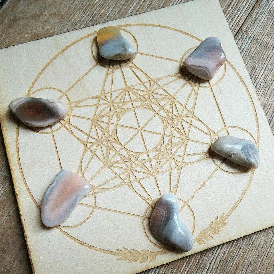 Ships in sets of six. Perfect for crystal gridding. Shown here are medium stones on a small crystal grid. You can find crystal grids in our shop here. To learn more about crystal grids, check out our step by step guide!
